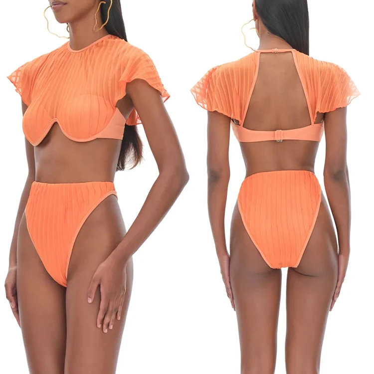Huilin Designer High Waist Thong Sexy Sheer Mesh Two-Piece Swimwear Custom Beachwear Tankinis for Women with Front Logo Position